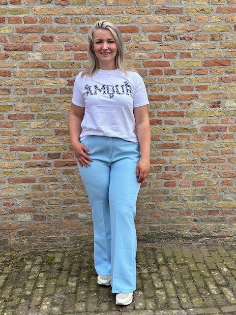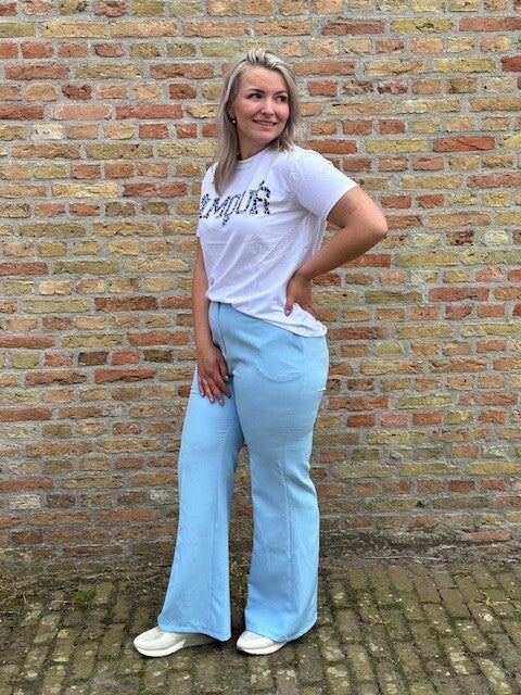 Op zoek naar een broek die heerlijk zit én er fantastisch uitziet? Dan ga je deze Sky Blue Flare Pants geweldig vinden! De zachte stof beweegt soepel met je mee en de hoge taille zorgt voor een mooie pasvorm.