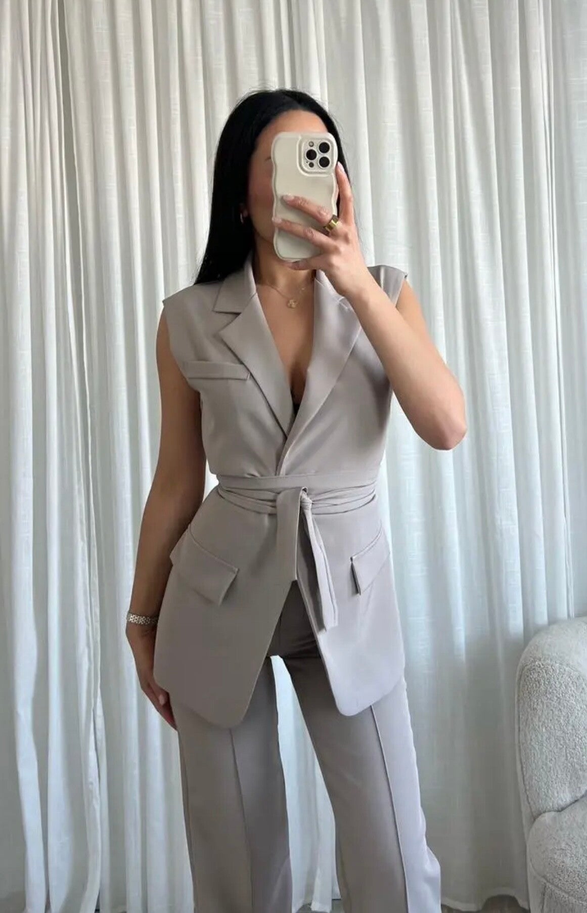 Mouwloze Blazer Taupe