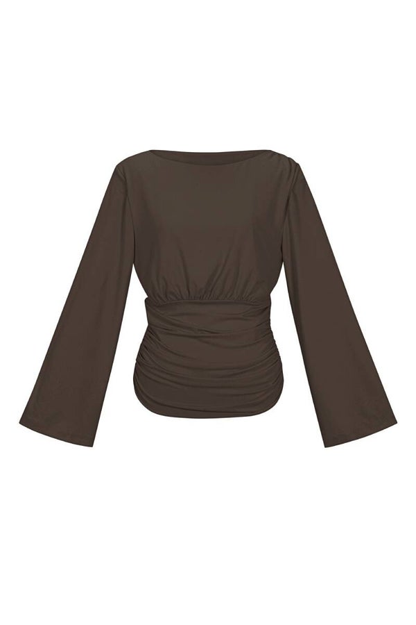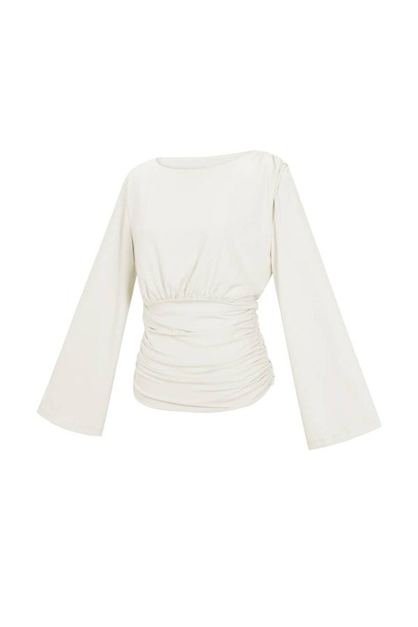 • Wijde lange mouwen • Plooien rond de taille • Verkrijgbaar in bruin en off- white • Perfect voor zowel casual als chic