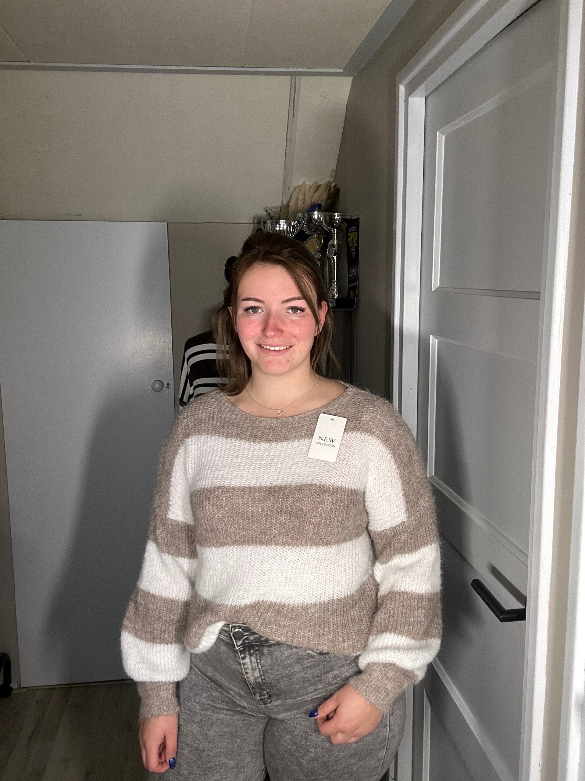 Gestreepte Trui Taupe/Off White