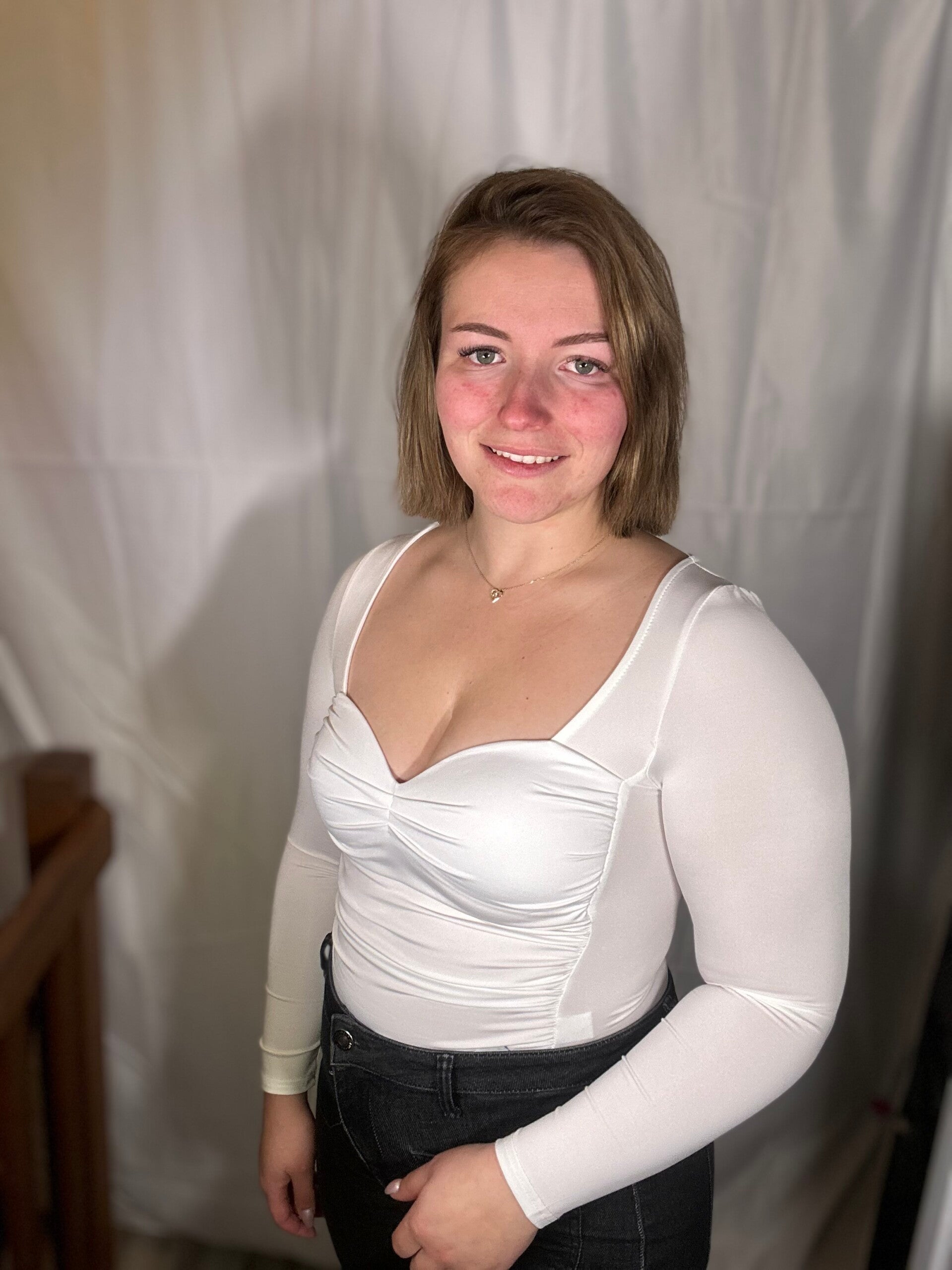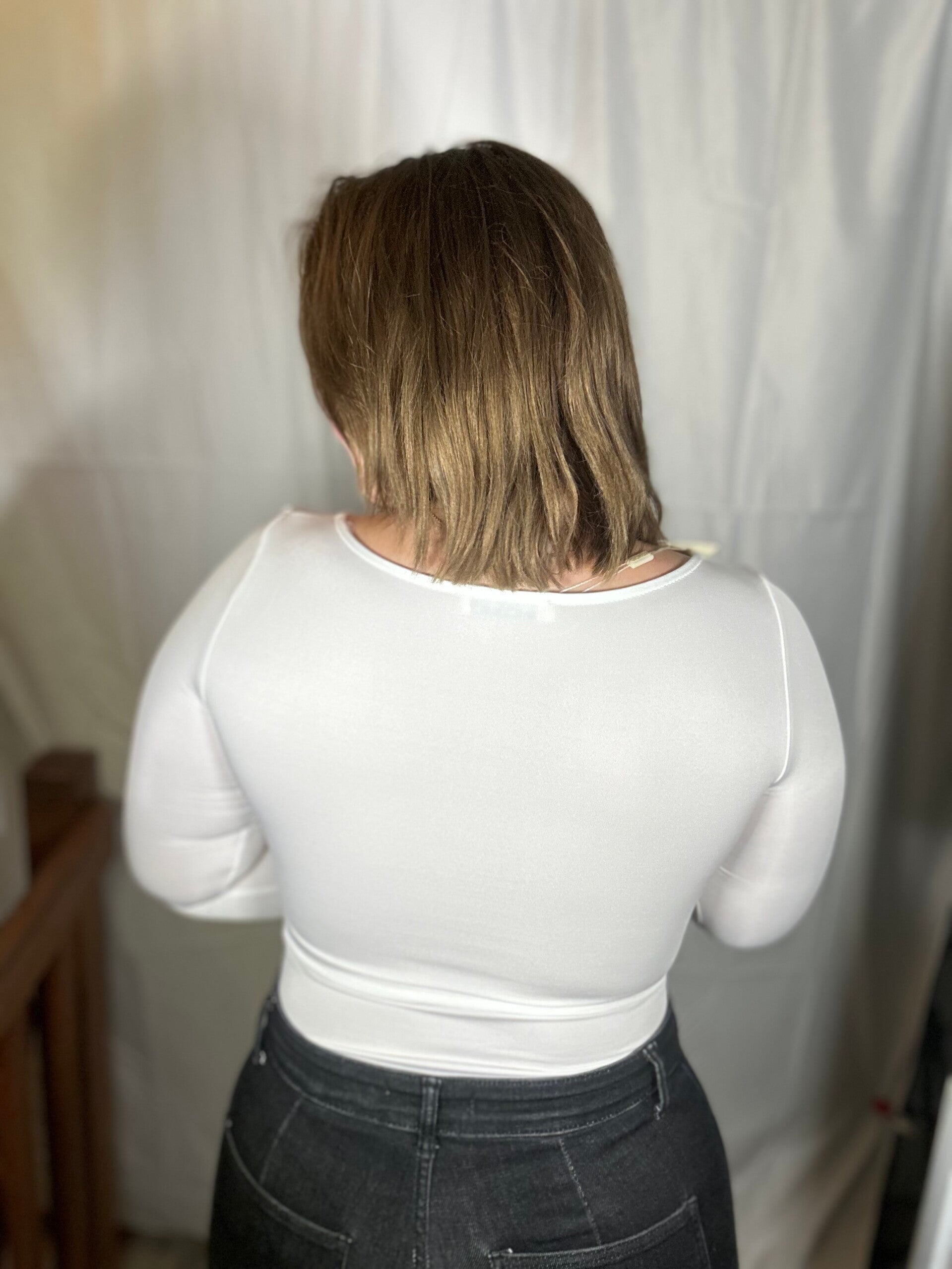 Witte body met ingebouwde cups – lange mouw (S/M – M/L)