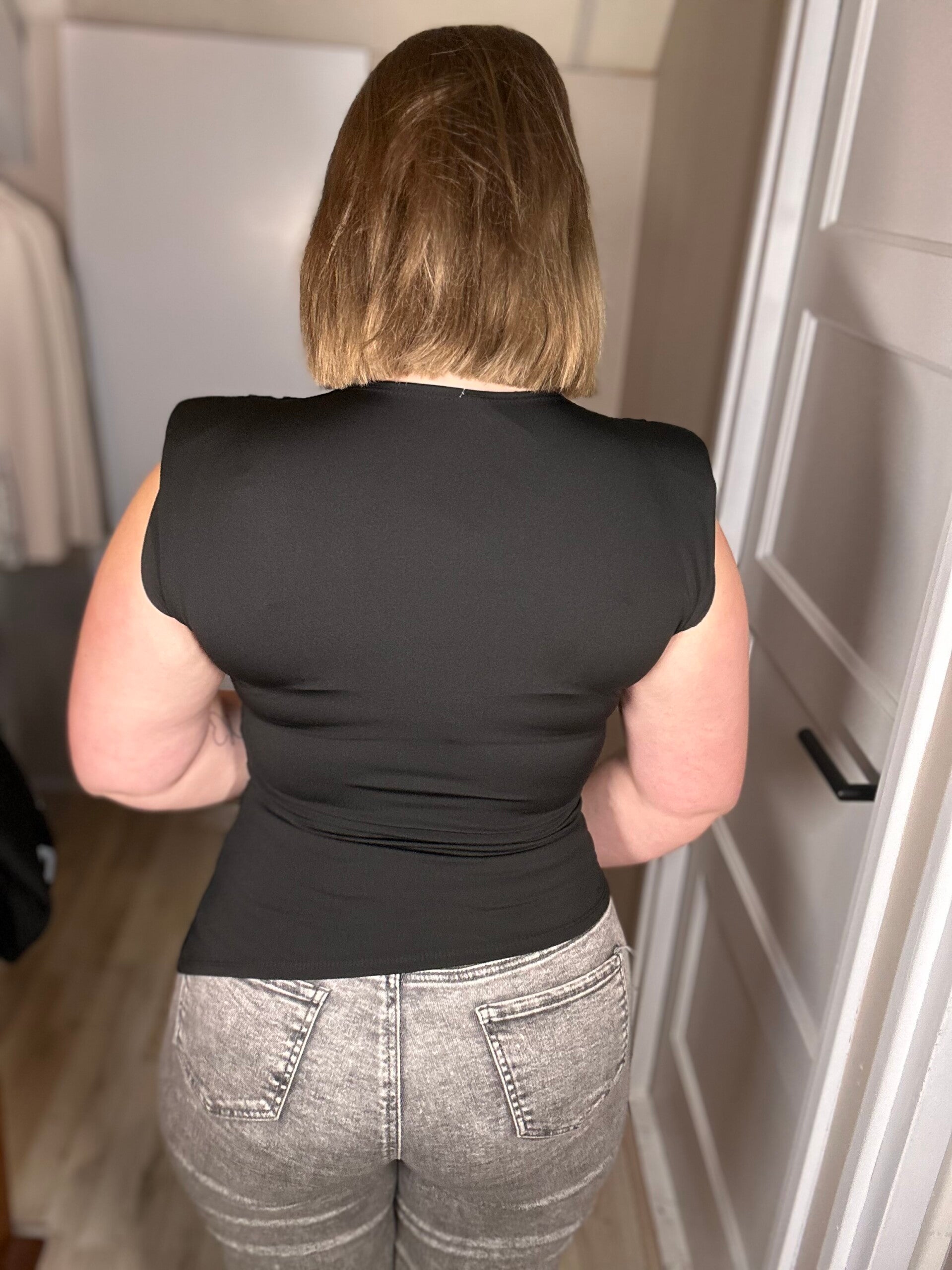 Zwarte top met schoudervulling en goud detail – One Size