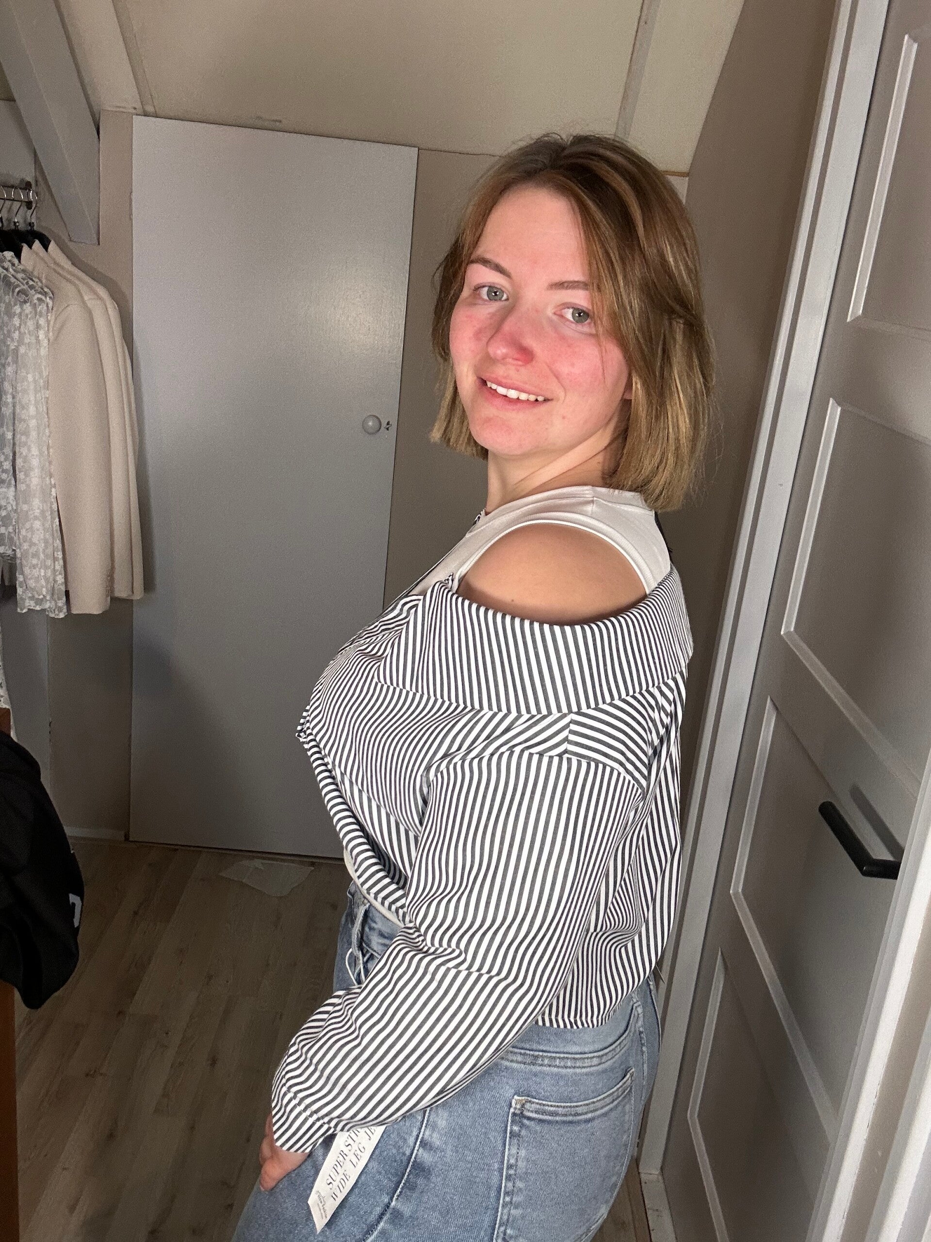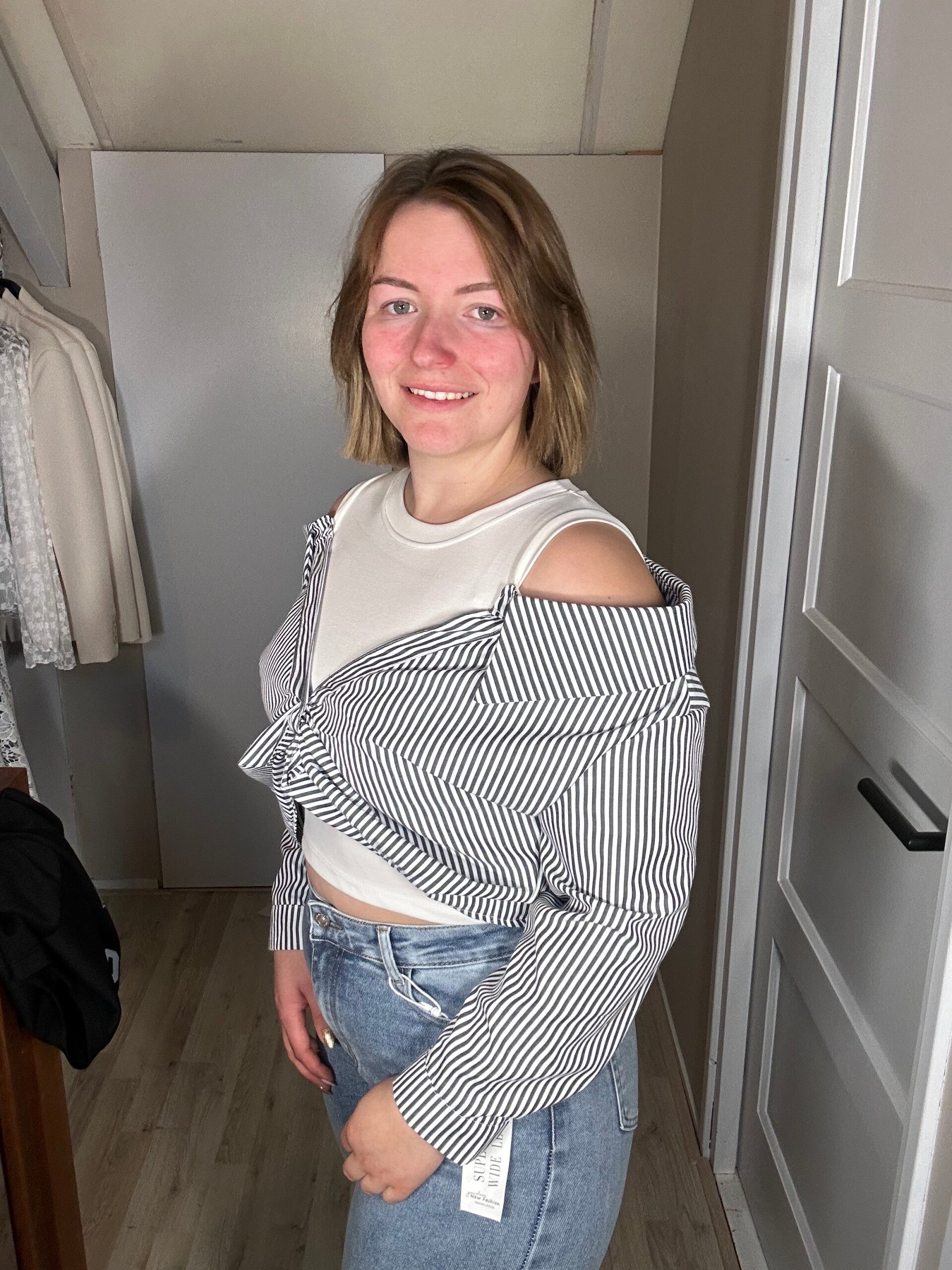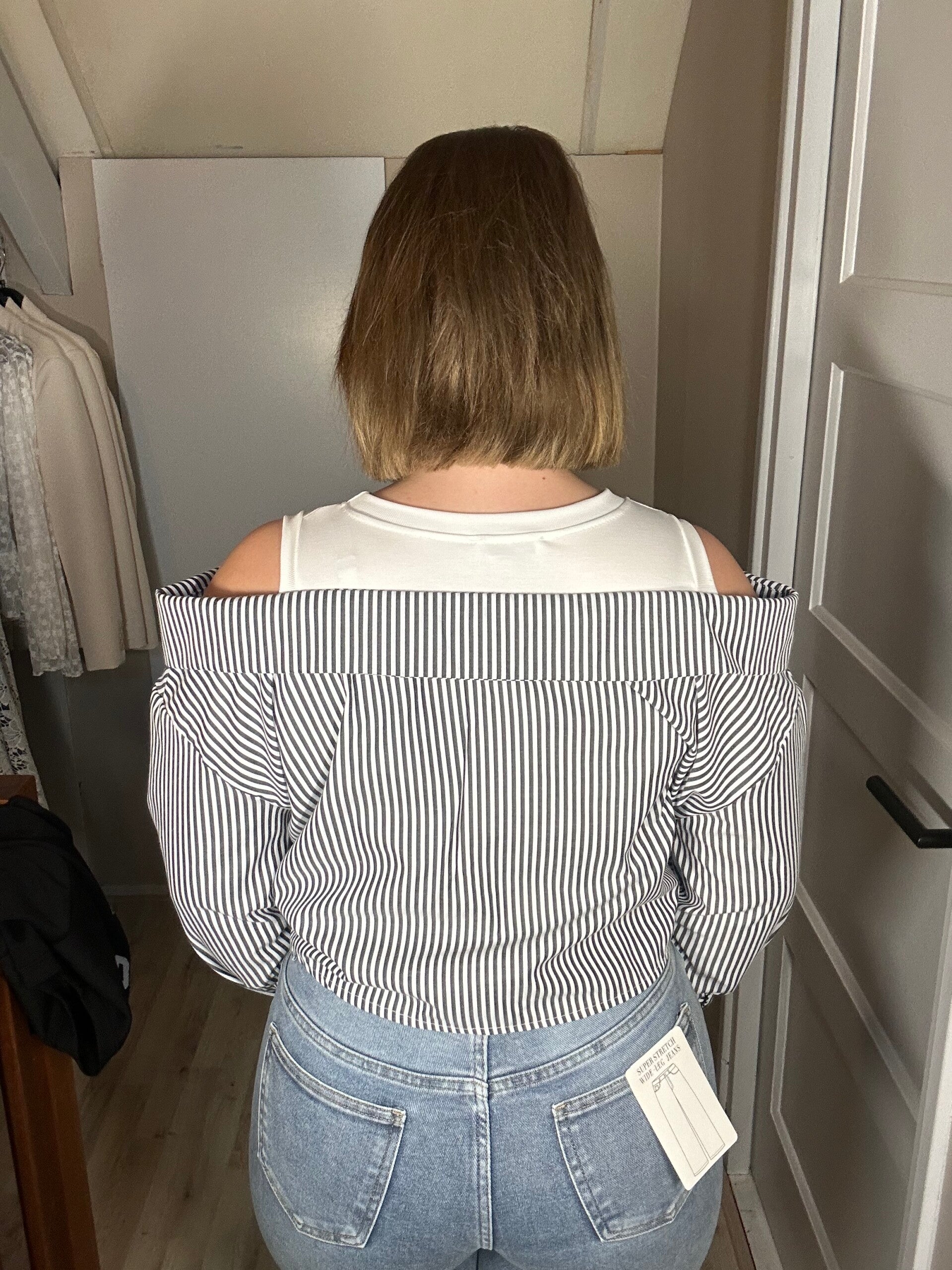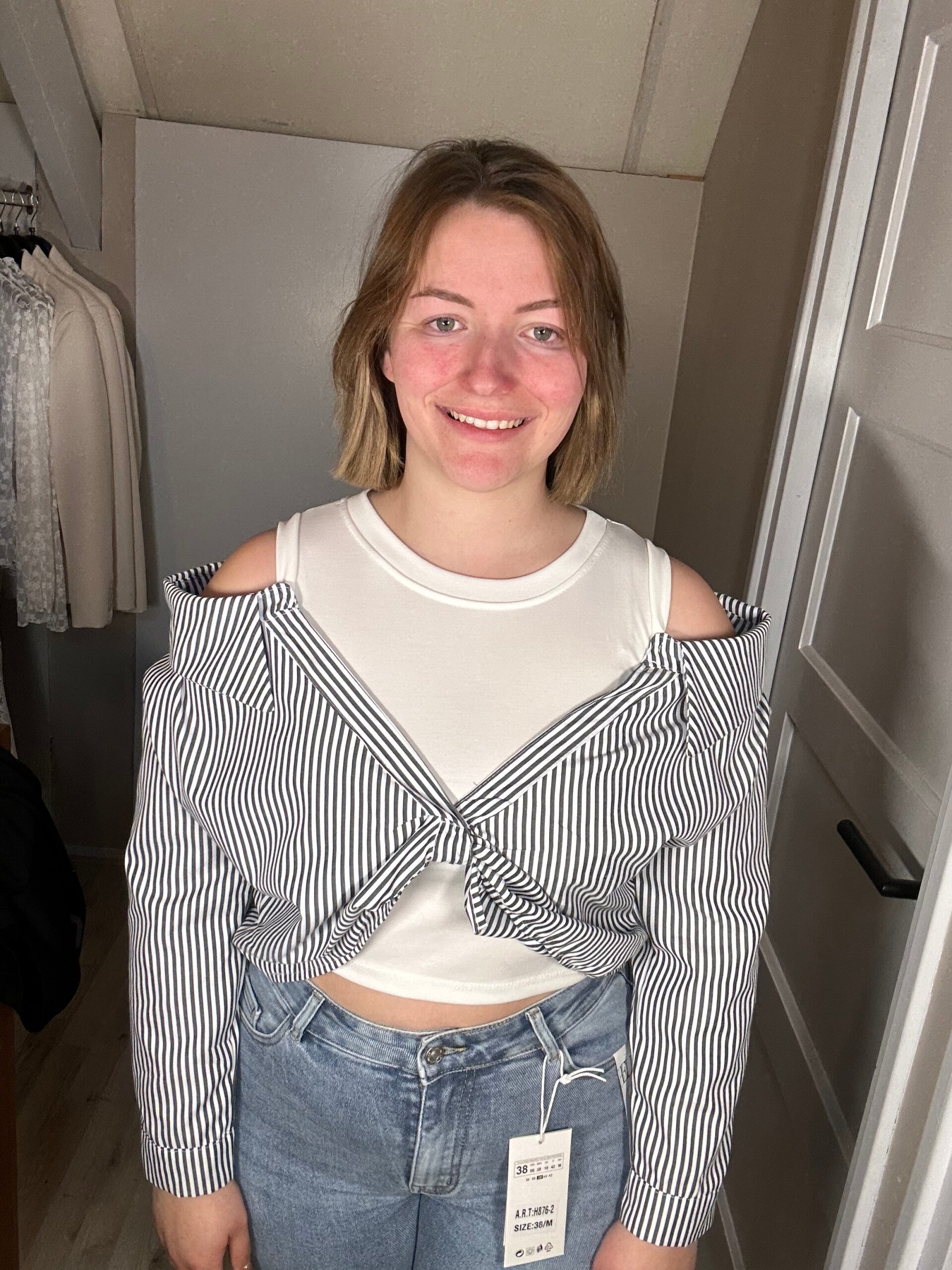 • Kleur: wit met zwart gestreepte blouse